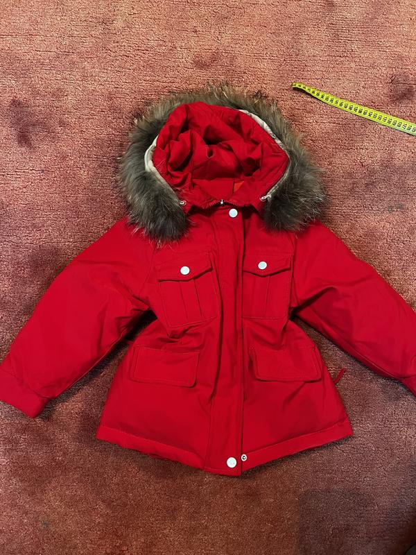 Куртка в хорошому стані,ріст 110,але ми носили швидше,як парку,подовжену.стирчить одна пірʼїнка,тому скоріш за все це пуховик,точно не синтепон.Дефект,який можна підшити є на фото.Не прала,тому що вважаю,що всерівно власник буде перепирати,.