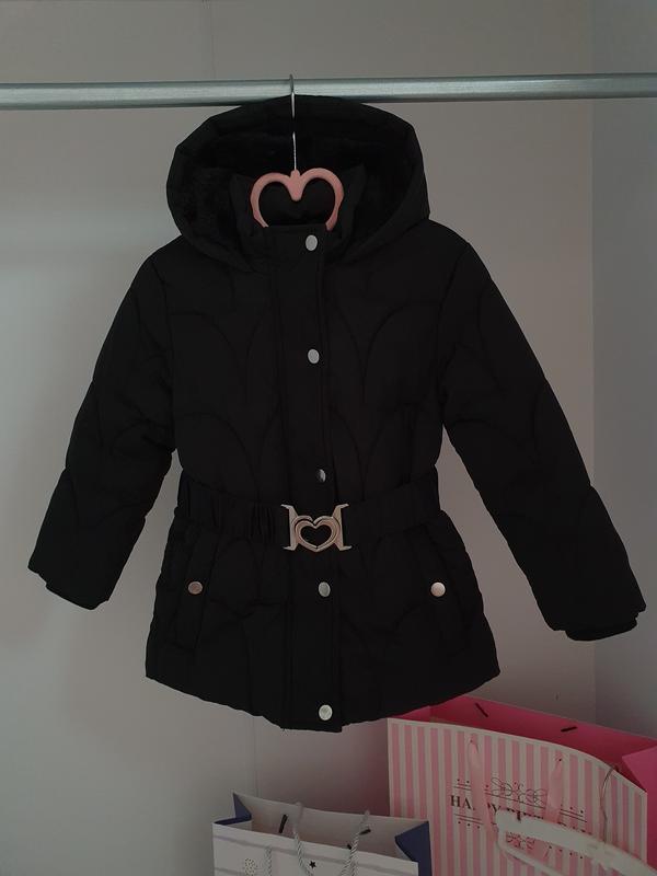 В продаже куртка Модель удлиненная идет в комплекте с поясом фурнитура сердечко Цвет черный Подклад наполовину приятный мех Бренд Primark Размер 2 - 3 года Длина рукава от плеча 34 см + внутри рукава патент Длина по спине 45 - 46 см Цена 250 грн 🏷