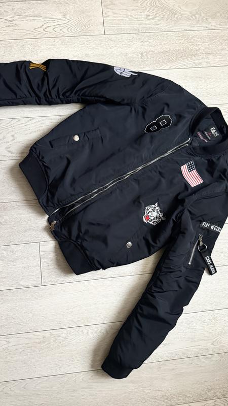 Стильний бомбер з нашивками, крута якість! Щільна тканина. Купили та не одягли , вже переріс. На мій понляд маломірить. Заміри скину