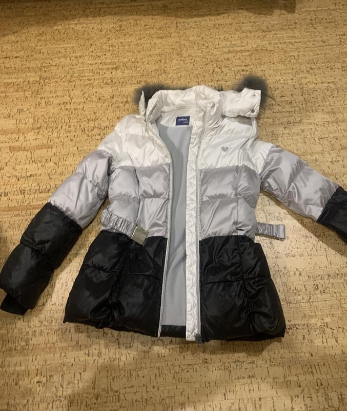 Gulliver дівчача подовжена курточка. Дуже класна, але на більш худеньку дівчинку, через звужений силует моделі. Якщо треба заміри чи додаткові фото пишіть в особисті повідомлення. Справно працюєте всі деталі курточки і хутро на капюшоні зйомне. Є затяжки на капюшоні та зістібки. Дуже класна, з утепленням і всередині штучний пух. Ширина по низу курточки приблизно 50 см А по талії приблизно 40 см + ремінець Довжина рукава починаючи з шву 61-62 см Довжина від горловини до кінця, приблизно 62 см Підійде на теплі пори року, але не сильно морозні.