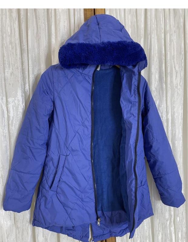 Куртка з каптуром демісезон для дівчинки. В ідеальному новому стані. Підходить як варіант для носіння до того як вдягти зимову куртку. Розмір 146. На дівчинку 10, 11 років. Колір синій електрик. Підкладка флісова. Наповнення синтепон. Добре переносить стирку. Довжина спереду від плеча до низу 67 см., Довжина по спинці до низу 71 см., Ширина між плечовими швами 35 см., Довжина рукава від плечового шва 57 см., Рукав має можливість корегуватися по довжині. Напівобʼєм грудей 43 см., Напівобʼєм низу куртки 57 см., Напівобʼєм бедер 47 см. В дуже гарному стані.