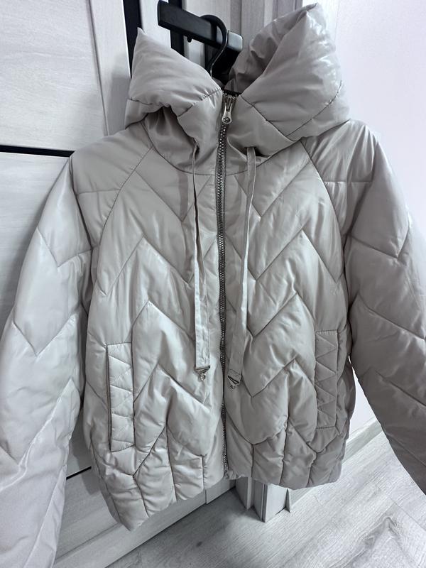 Осіння куртка на дівчинку , у новому стані. Одягнули 1-н раз. Довжина по спинці -64 см, довжина з переду -53 см, довжина рукава від горловини -61 см. Довжину можна регулювати за допомогою резин очки по бокам. Капюшон глибокий .