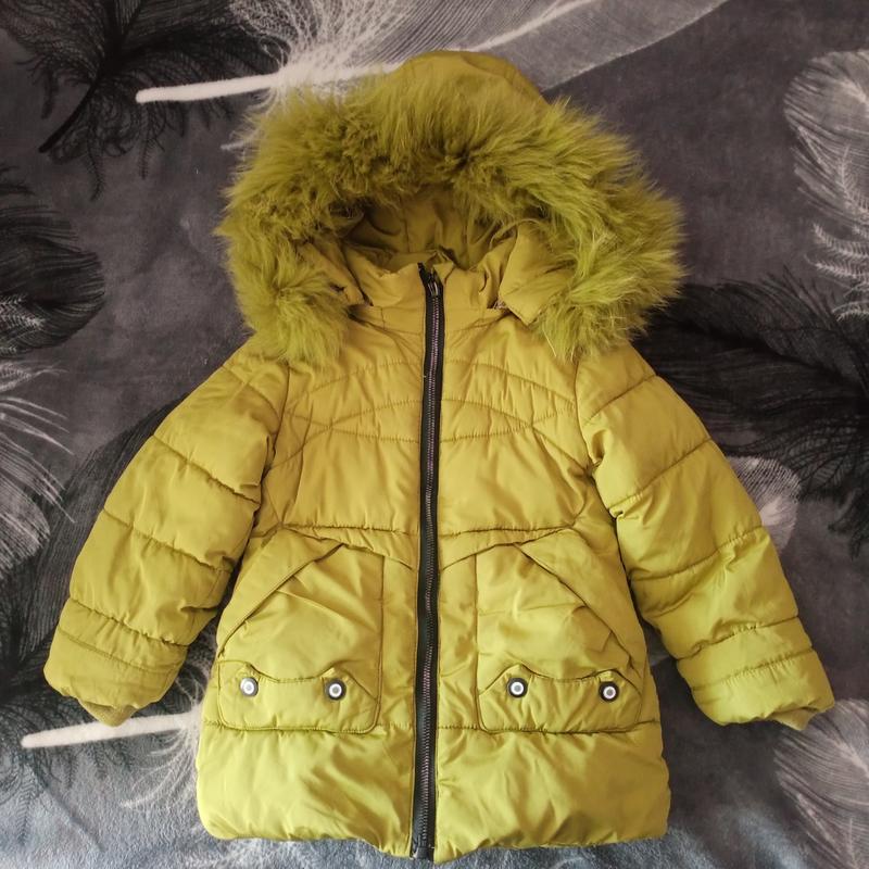 Салатова куртка Очень теплая, на холодную зиму. Эффектов нет. Капюшон и мех снимается. На рост 98см Длина 45см Рукав 37см