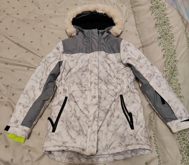 Продам термо мембранную куртку, очень теплую в отличном состоянии. Относили 1 сезон. Была куплена в Польше в специализированном магазине. Размер 140 Капюшон пришивной, мех отстёгивается, внутри два кармана потайной и сеткой, на рукаве тоже карман. Цвет: светло серый с разводами Замеры Рукав от плеча 50см Плечи 36см Пояс по резинке 38см Подмышки 43см Длина по спинке от горловины 62см