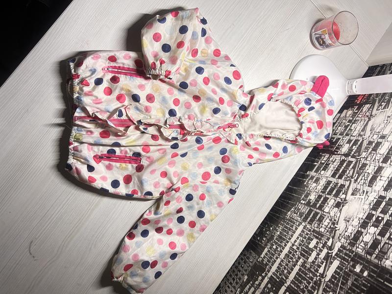 Куртка-вітрівка для дівчинки 2-3 років, без утеплення, з капюшоном та кишеньками. Підійде на прохолодні літні вечори та теплу осінь чи весну. Стан дуже хороший.