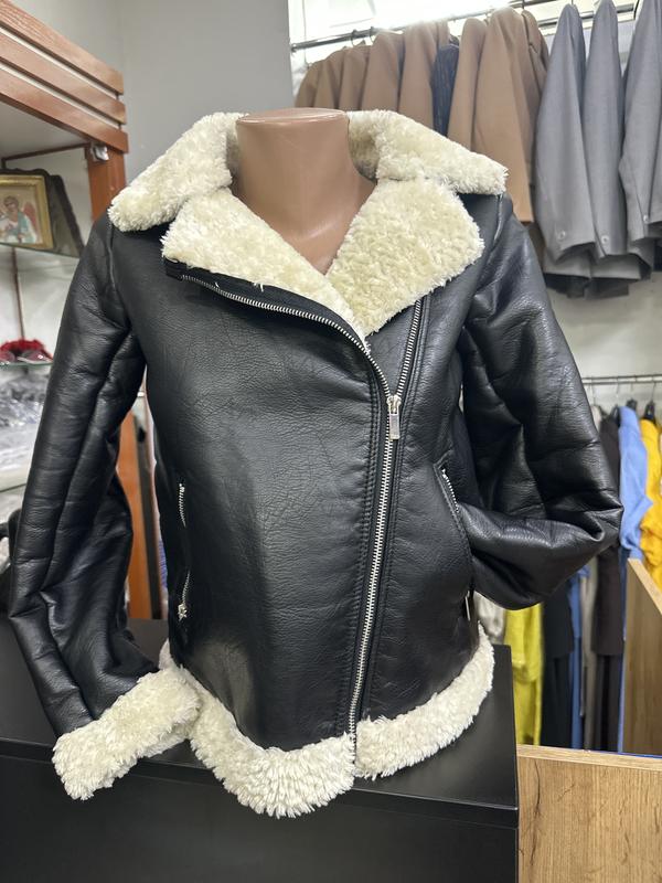 Куртка комаха для підлітка, осінь, зима, розмір xs, верх штучна шкіра, середина штучне хутро, довжина виробу 55, Ог 86, довжина рукава 55