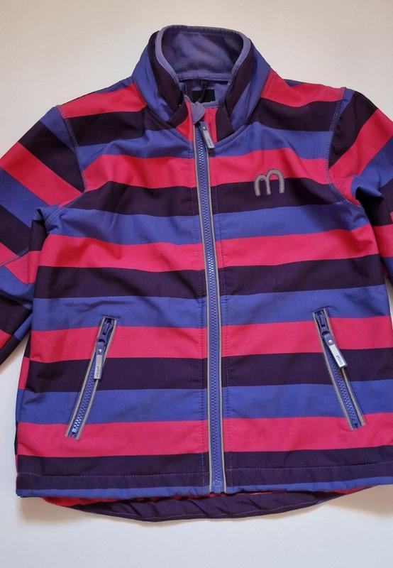 Красивая куртка софтшелл девочке Minymo. Без капюшона Размер по бирке 140 (10 лет). Но можно и раньше. Ткань дышащая, водоотталкивающая, ветрозащитная . Есть светоотражатели. Куртка теплая, ее можно носить до +5 градусов на улице с флисовой кофтой, надежно защитит от ветра и холода. На тонкий реглан или футболку можно носить при температуре до +10 градусов. Внутри флис. длина 55 см полуобхват груди 46 см рукав от плеча 51 см