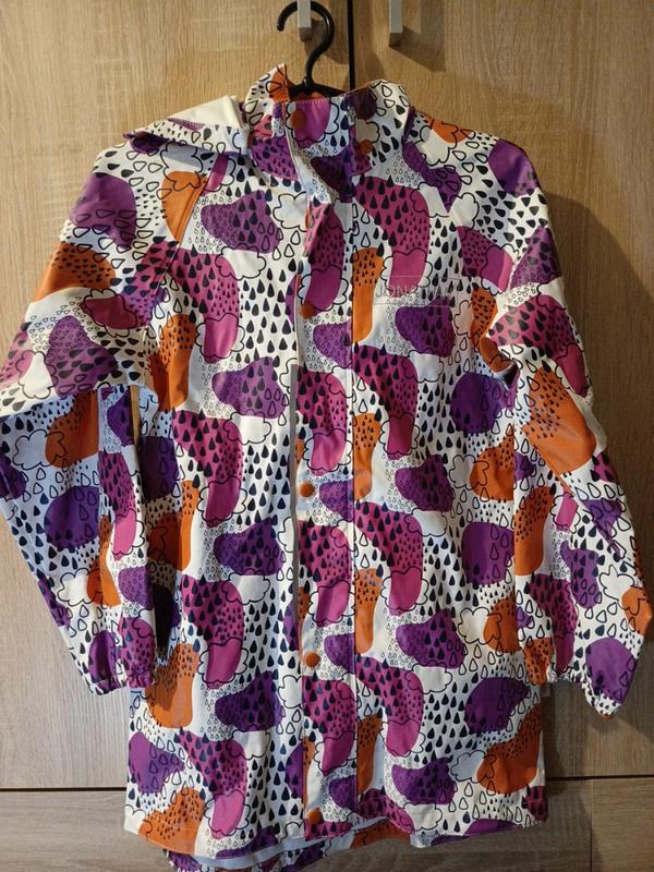 Мега крутий дитячий дощовик на 140 см в стані нового без дефектів.На рукавах резинках,ззаді подовжено.Капюшон знімається .
