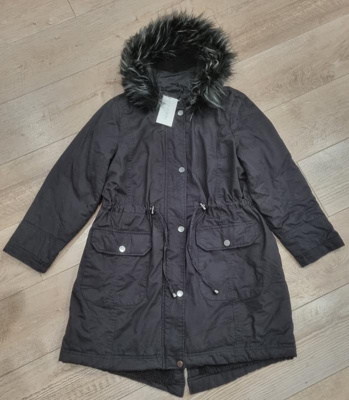 Парка на теплую зиму- демисезон, 44 размер, женская S, но подойдет на 158-164 размер. На средней телосложения девочку, или висянку. Внутри мех, рукав без меха. Мех отстегивающийся. Заміри на фото.