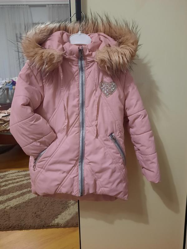 Зимняя куртка для девочки,размер 104см, носили от 4 до 5,5роков куртка в середине на флисе, неуклюже можно подвернуть, есть 2 функциональных кармана, капион отцепится