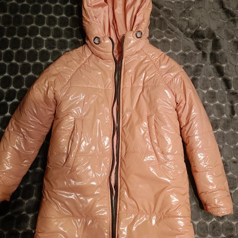 теплая куртка на девочку, состояние идеальное (но есть нюансы на последних фото) выселла в шкафу и касалась принтованной коробки и за зиму отпечатывался рисунок на курточке. возле дома бегать можно, в реале не так видно как на фото