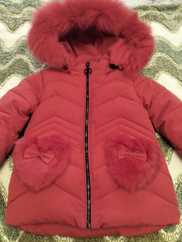 Зимняя куртка на девочку 92 размера. Из капишона и карманов мех снимается. Длина куртки по спинке 50, длина рукава от шеи 45, ширина под руками 36.