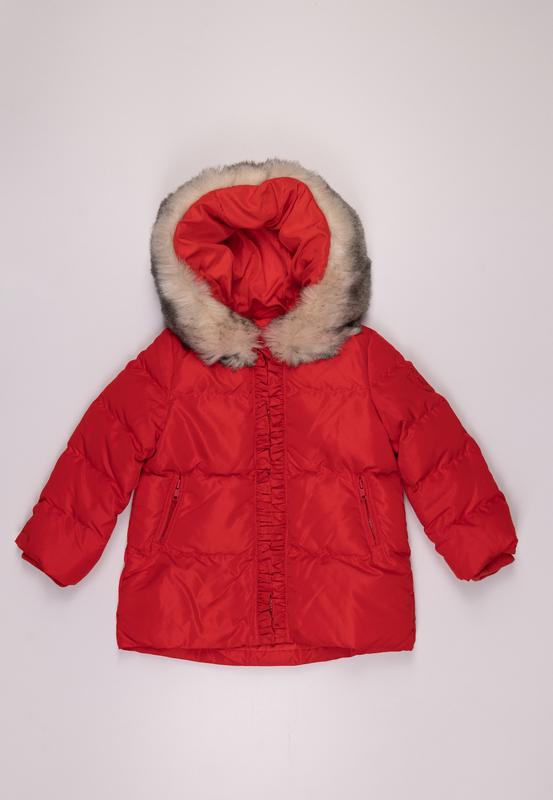 Дівчача тепла красна куртка бренду Monnalisa з капюшоном і кишенями