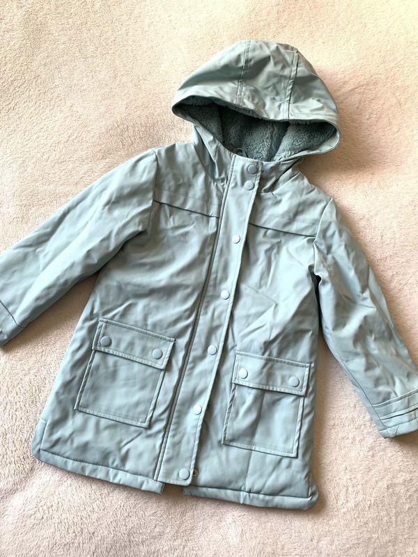 Курточку , плащик тепленький для дівчинки 5-6 р, підійде на теплу зиму, холодну осінь. Дуже гарний колір вживу, стан ідеальний. Довжина 56 см, пог 38 см, рукав 39 см