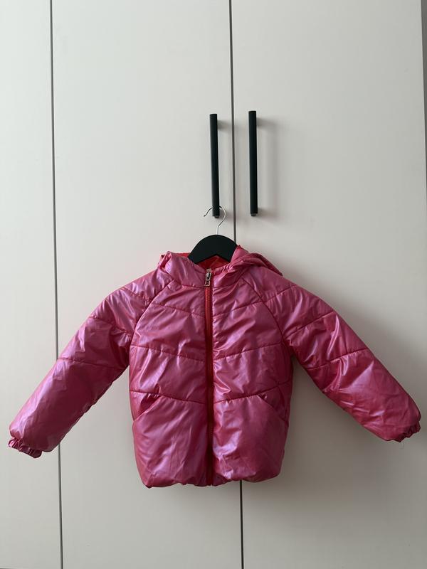 Чудова, перламутрова курточка, як нова, дуже практична, капюшон не відстібається, колір фуксія, переливається