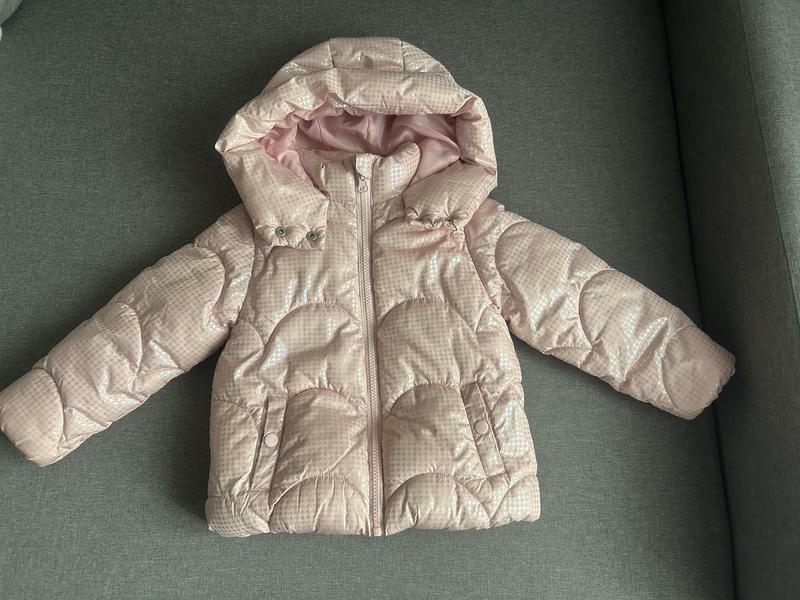 Куртка на дівчинку 3-4 роки 104 см Ідеальний стан, нюанс маленький ( плямка)біля капішона, на використання не впливає, Довжина 41 см Під ручками 34 см Рукав 36 см( рукав до капішона 43 см)