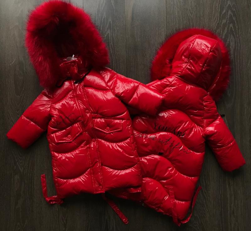 верх курточки - водонипроникна,прорезинена тканина -наповнювач еко-пух,надзвичайно тепла взимку і комфортна для пізньої осені,не важка -підкладка - нейлон -якісна і дорога фурнітура. -застібається на блискавці -на капішоні дороге штучне хутро,як "натуральне", можна відстібнути -капішон відстібний -в рукавчиках є захист від попадання снігу -на спинці ніжний надпис -знизу на зав"язочках,які можна затягнути -є дві накладні функціонуючі кишені Розміри в наявності: 98см 98см. рукав від горловини - 41см. довжина - 57см. ширина - 40см.