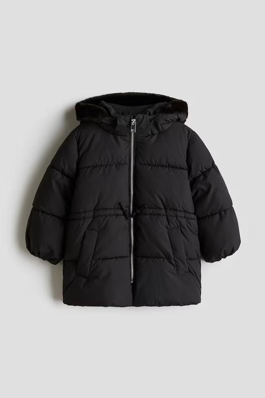 Подовжена куртка на дівчинку в чорному кольорі від H&M з діючої колекції (добре підійде на холодну осінь/ теплу зиму). Розмір: 6-8 роки ( зріст 122/128 см) в стані нової речі Довжина 65 см, рукав від плеча 48 см.
