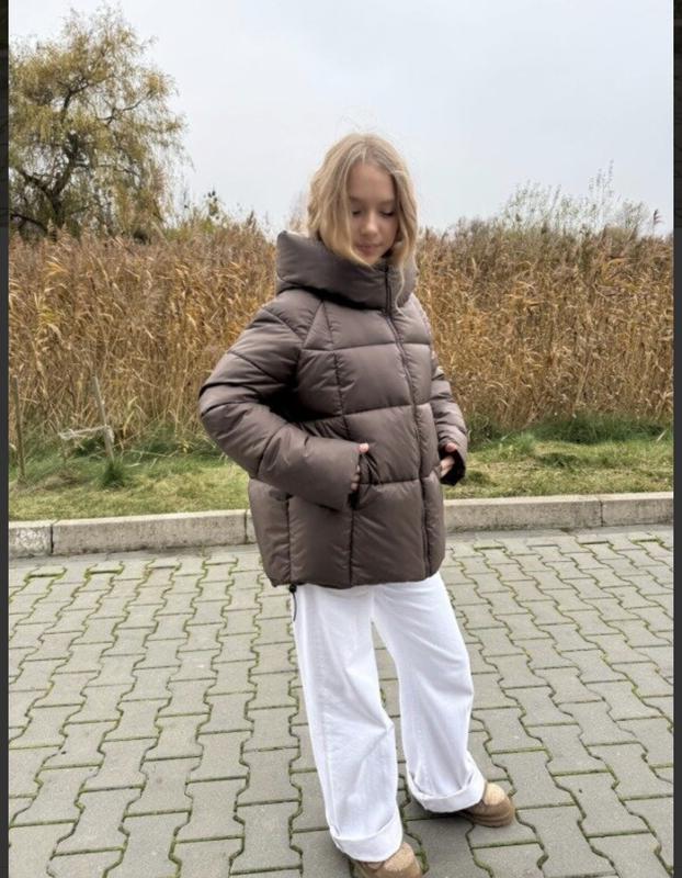 Стильна зимова курточка на дівчинку. Тканина плащівка гарної якості Крій оверсайз. Утеплювач еко-пух Курточка внизу зтягується куліскою. Єглибокий капюшон, якісна фурнітура. Колір шоколад Гарна якість! ПОВНОМІРНА! Розміри 152 - 1 шт 158 - 1 шт 164- 1 шт Мд