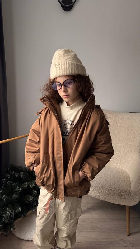 ЦИНА 1210 Стильная детская куртка для холодной осени и еврозимы Особенности модели: Материалы: верх - полиэфирное волокно, утеплитель - полиэфирное волокно; подклад - нейлон. Теплая и легкая: хорошо удерживает тепло, не стесняет движений. Функциональный капюшон: капюшон съемный, с искусственным мехом (мех не снимается), придает образу уютный зимний стиль. Двойная защита: застежка на молнию и кнопки надежно защищает от ветра и холода. Удобные кармашки: для перчаток, безделушек или просто чтобы согреть руки. Регулировка ширины: кулиски внизу куртки позволяют подстроить посадку под ребенка. Замеры: р.140 - длина 59 см, ширина 56 см, рукав от горла 53 см р.150 - длина 64 см, ширина 58 см, рукав от горла 57 см р.160 - длина 67 см, ширина 60 см, рукав от горла 60 см фото реал