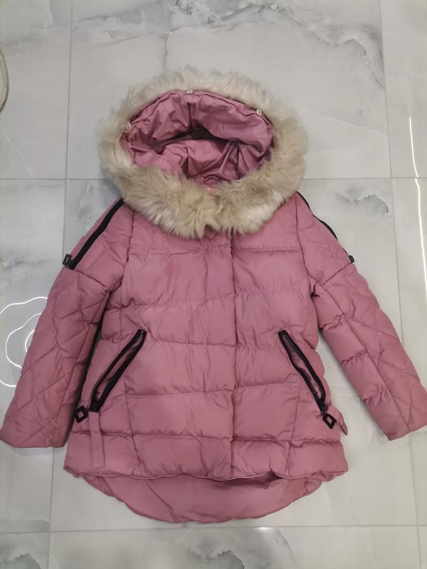 Очень теплая зимняя куртка. Зад довший. Размер 8, но маломерит очень. Будет на 5-6 лет. Мех снимается.