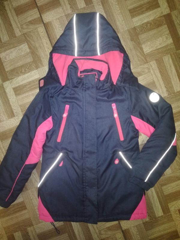 Курточка на девочку осень- теплая зима. на рост 140. Снаруже состояние идеал/ из нюансов : нет одной липучки внутри.