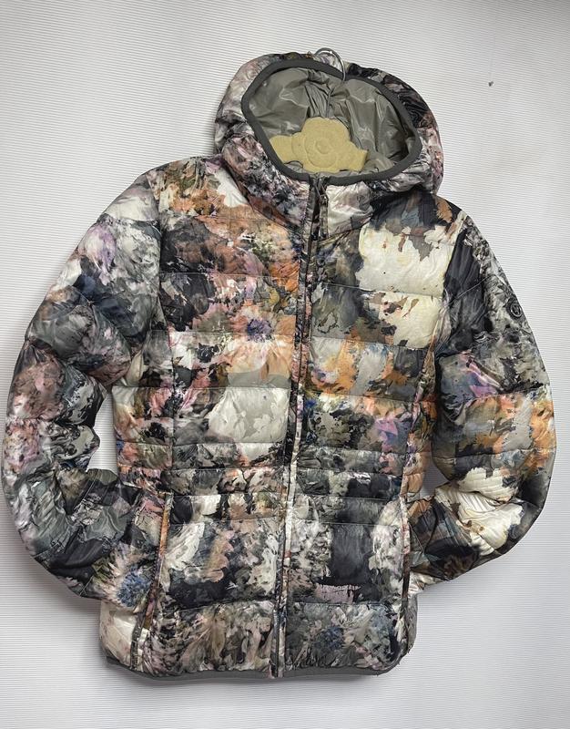 Заміри по виробу. Напівобхвати: Г -43 Т- 38 Б-42 Довжина від плеча 56 Довжина рукава від плеча 63 см Наповнювач: перо качки 10%, пух качки 90%