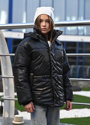 ‼️ТРЕНДОВА ПІДЛІТКОВА КУРТКА ОВЕРСАЙЗ ‼️ №24488 Виготовлена з плащової міцної тканини. Водонепроникна та вітрозахисна. Наповнювач холлофайбер 250. Блискава закрита додатковим клапаном на кнопках , який не пропускає вітер! Об'ємний капюшон має високий комірець на кнопці, що захищає в холодну пору. Стильний манжет на рукавах‼️ Розміри: 146-152, 152-158, 158-164, 164-170 Колір - чорний