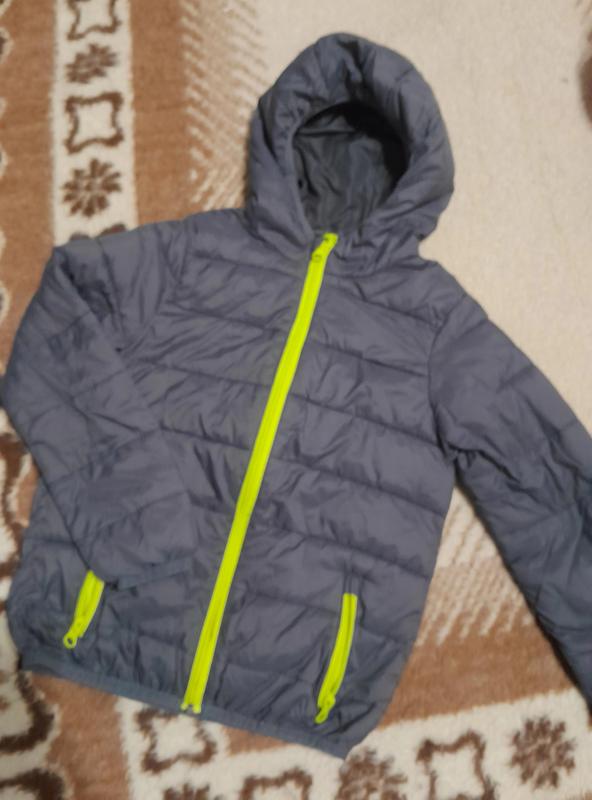 Весенняя курточка на мальчика с капюшоном на молнии. Размер92/98. Длина по спинке 48.5 см, длина рукава 48 см, обхват груди 75см.