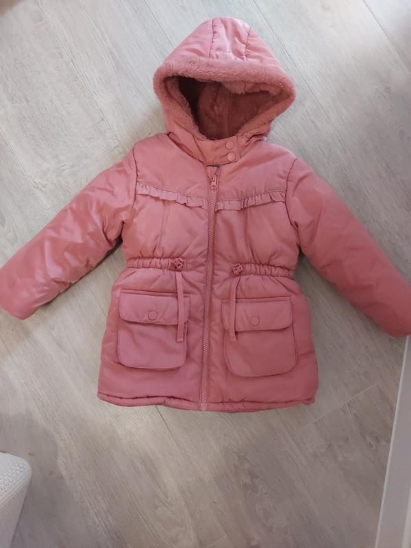Красива, стильна куртка з дуже гарної тканини на дівчинку 4 р. ,104 р. рукави не утеплені штучним хутром, задля активних рухів. Колір насичений як на другому фото,вся фурнітура у відмінному стані на одній кишенці є мікро подряпинка,яку не видно зовсім,якщо не знати.