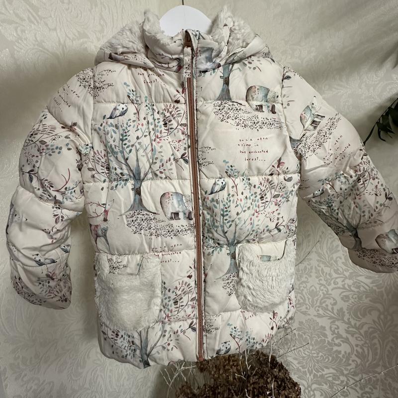 Тепла зимова куртка некст, next з принтом звірята та накладними хутряними кишеньками. Стан нової