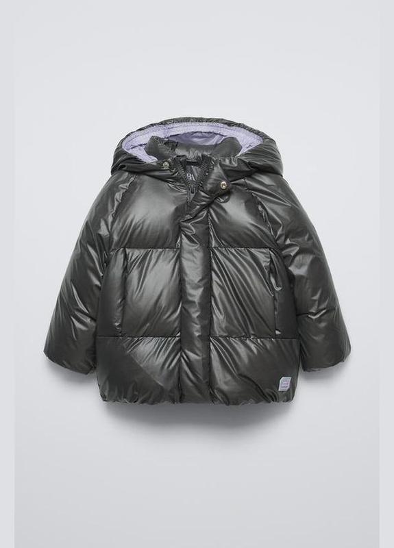 Графітова дитяча зимова стьобана довга куртка для дівчинки 5992/570 графітовий Zara