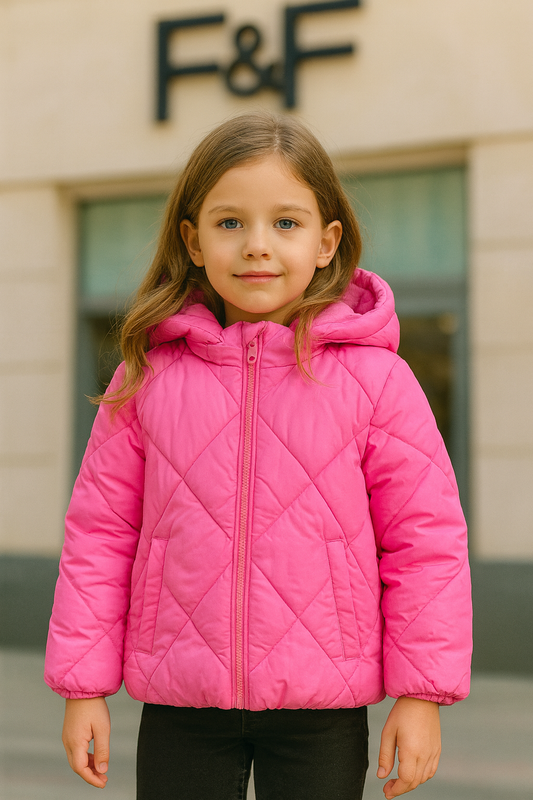 Розовая стеганая куртка для девочки, с капюшоном, теплая / f&f / eu 110-116 / 5-6 рок...