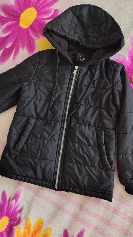 Куртка демисезонная с капюшоном на девочку или мальчика лет 6-9.Блика рабочая дырок пятен нет.Рукавчики на манжетах.Утеплитель синтепон.Замеры на фото.