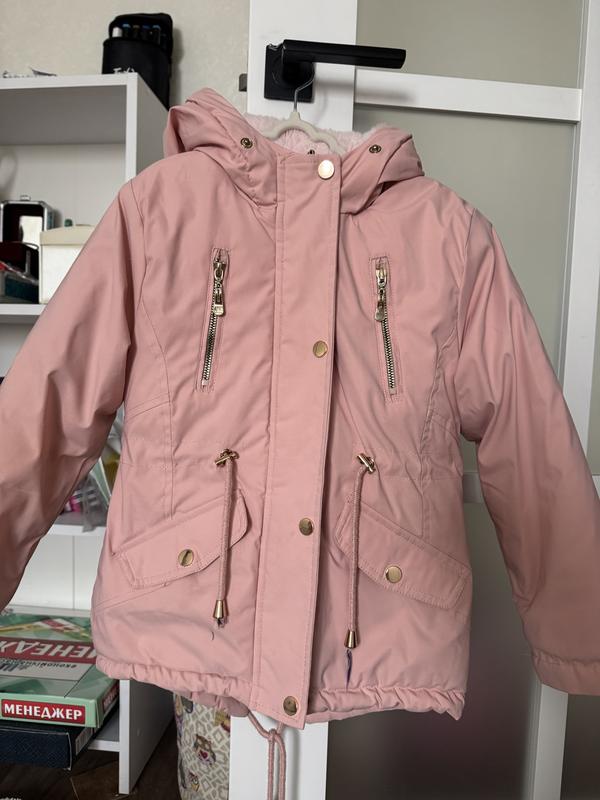 Якісна зимова куртка, всередині утеплення - штучне хутро. Ззовні - міцна водо-, вітронепроникна тканина, золота фурнітура (не образить після прання). Та талії є куліска, яку можна затягнути. Була у вжитку
