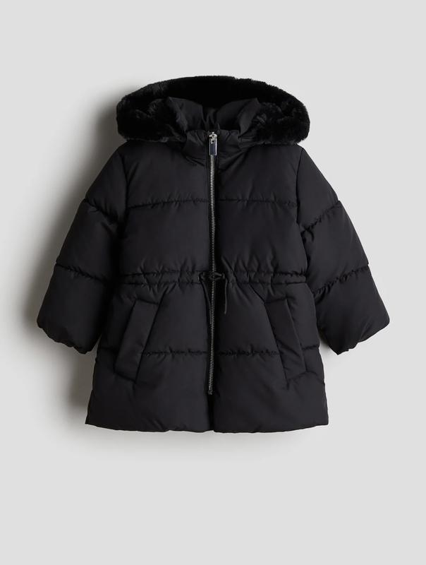 Удлиненная Куртка с меховым капюшоном от Н&М Подкладка полиестер, в талии утяжка, капюшон съемный, высокий ворот. Состояние идеал 8-10 лет/134-140 Длина 72. Пог 48. Рукав 53-63