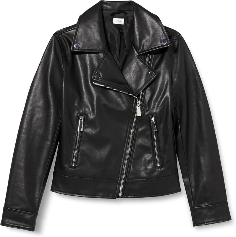 Підліткова чорна куртка-косуха для дівчинки 152 см від бренду S.Oliver з штучної шкіри. Модель виконана у прямому крої. Має відкладний комір з лацканами, косу застібку-блискавку, довгі рукави та прорізні кишені на змійках. Тканина: 100% поліуретан. Доставка в межах міста Одеса безкоштовно на замовлення від 300 грн.