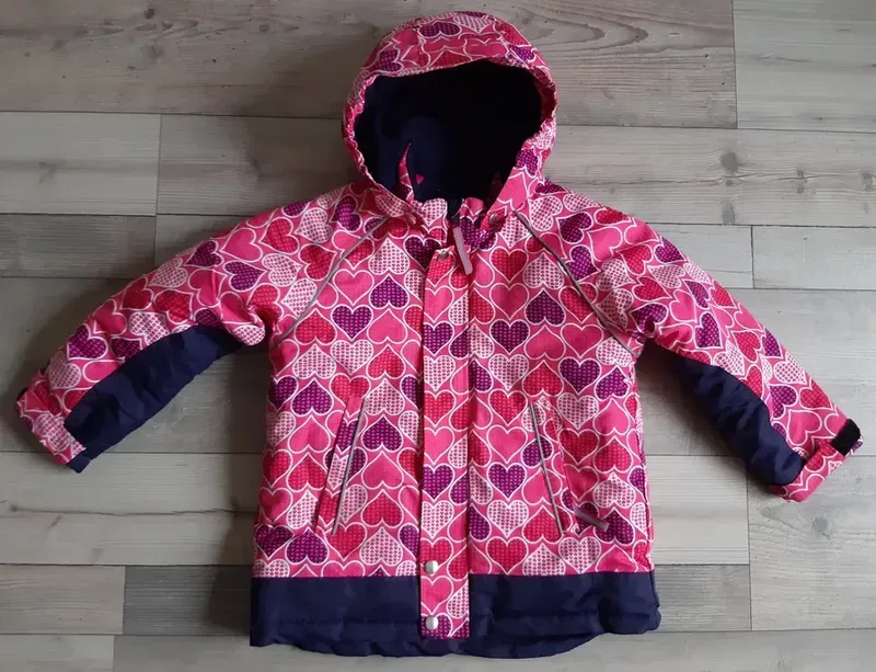 Курточка просто прекрасна для зимнего периода. Качественная, теплая, практичная, с интересным принтом. Материал замечательный: ветронепродуваемый, водоотталкивающий. Легко чистится и стирается. Состояние куртки - идеальное, как новое. Утеплитель: синтепоновое наполнение, подкладка на флисе. Защелка: молния, кнопки. Капюшон утеплен флисом, отщепляется. Манжеты рукавов регулируются липучкой. На куртке есть светоотражающие полоска. Два боковых кармана на молнию. Возраст: 7-8 лет. Замеры: Длина спереди от горловины до низа-44 см Ширина от подмышки до подмышки-41 см Длина рукава от горловины -50 см Вн.шов рукава-33 см. Полностью соответствует фото!