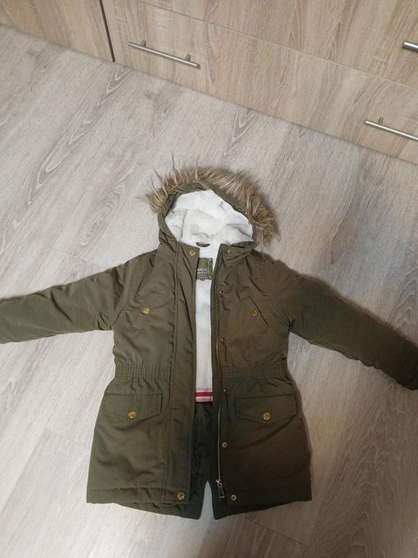 теплая куртка в идеальном состоянии, ткань непромокает, мех можно отстегнуть длина по спинке 55 см, спереди 53 см длина рукава 43 см