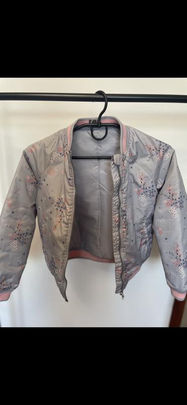 Стан: Відмінний Опис: • Стильна та легка куртка-бомбер. • Манжети, комір та низ виробу на еластичній трикотажній резинці рожевого кольору. • Зручна застібка на блискавку. • Універсальна модель, підходить для прогулянок у прохолодну погоду. Заміри та додаткові фото надам за запитом. Відправлю будь-якою поштою!