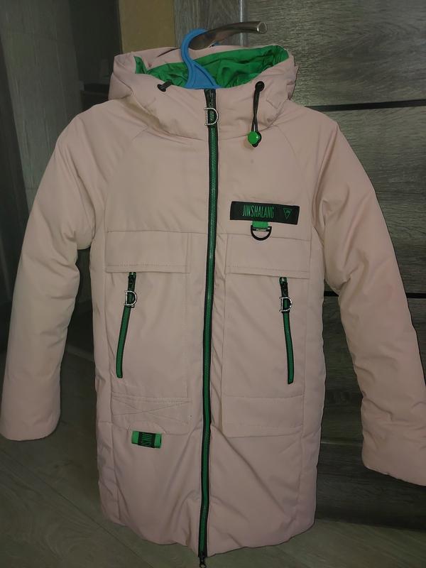 Куртка зимняя детвора на рост 152 см.. Стан идеален. Имеет два кармана на замках.Рукава с манжетами. Замеры: длина 78 см ПОГ 45 см рукав от капюшона 66 см.