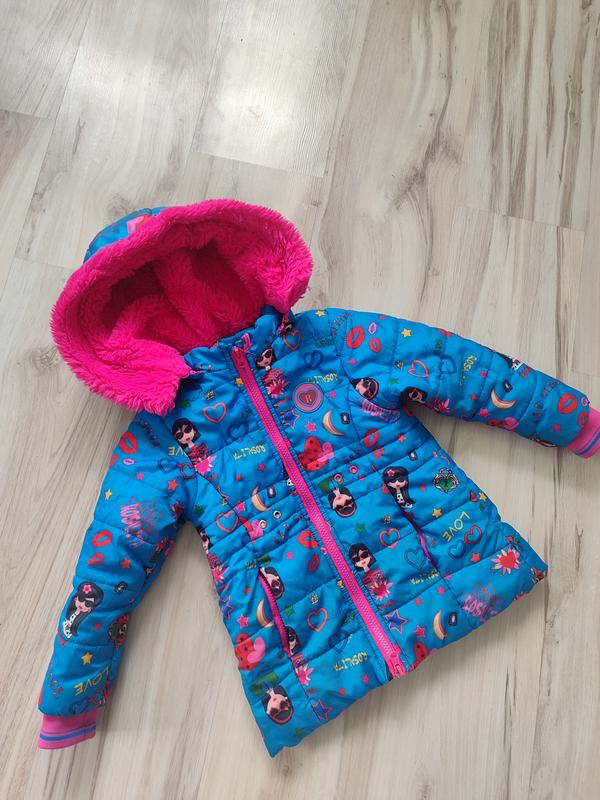 Куртка теплая на девочку на 3 года (98 размер). Замеры: - длина -46 см; - полуобхват груди -34 см; -рукав-35+ 4 см манжет; - спинка-27 см.
