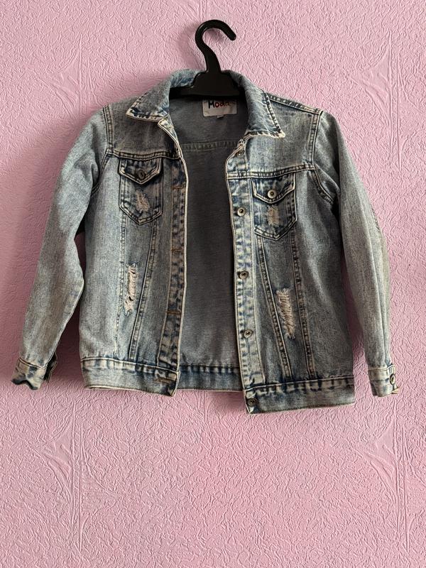 Джинсова куртка, на дівчинку, у гарному стані, сучасна, стильна. Розмір:150