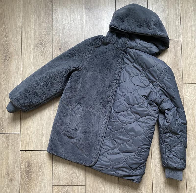 Двостороння демісезонна куртка-шубка Primark на зріст 140-146 см. Стан: дуже хороший, є маленька затяжка, резинка на рукавах має ковтунці, замочок обліз (все є на фото). Заміри: довжина 62, ПОГ 45, рукав від плеча з резинкою 53.
