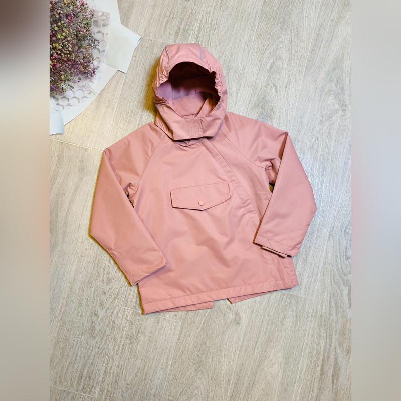 Дитяча вітро- та водонепроникна термо-куртка для дівчинки 122/128 см від бренду Tchibo. Матеріал захищає від дощу та вітру, залишаючись при цьому дихаючим. Зовнішнє покриття має екологічне водовідштовхувальне просочення evoPel, яке не містить шкідливих речовин і забезпечує тривалий захист від вологи. Внутрішня підкладка з м’якого мікрофлісу зберігає тепло, а герметичні шви не пропускають воду. Модель має знімний капюшон, м’які манжети в рубчик, асиметричну блискавку та декоративні світловідбивачі для кращої видимості в темну пору. Також передбачено іменний ярличок для зручності. Тканина: 100% поліестер.