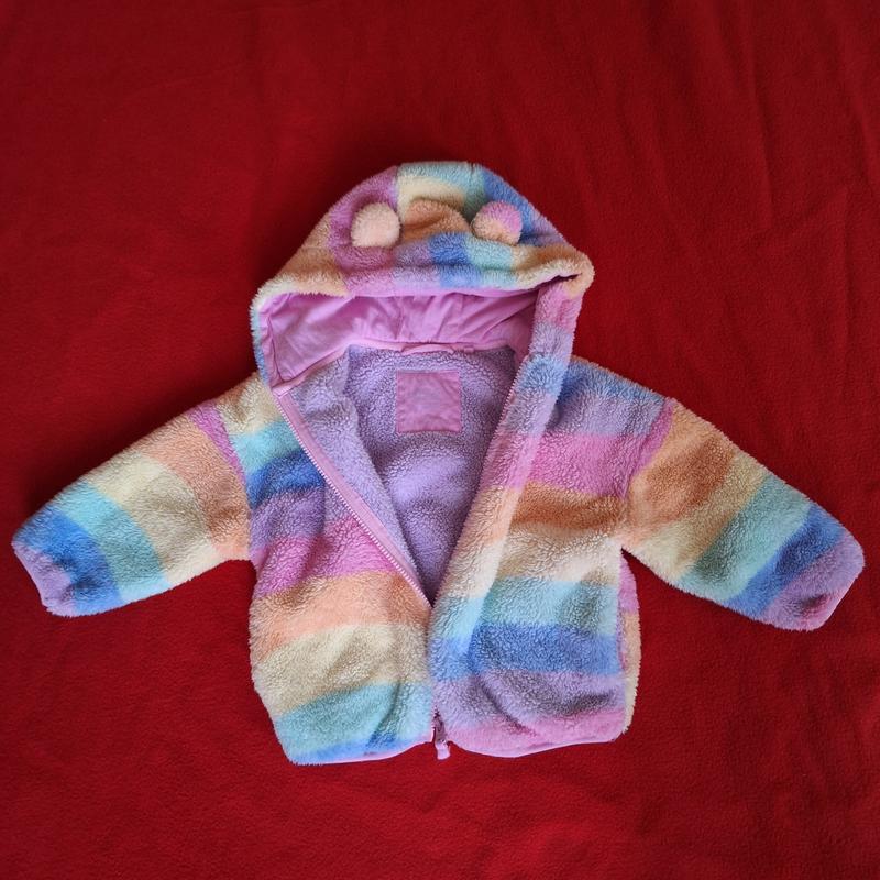 замеры: длина 44 рукав 35 ширина 37 внизу 32 плюшевая, плотная шубка, тёплая, на весну, осень. есть кармашки. одевали примерно на погоду до +12.