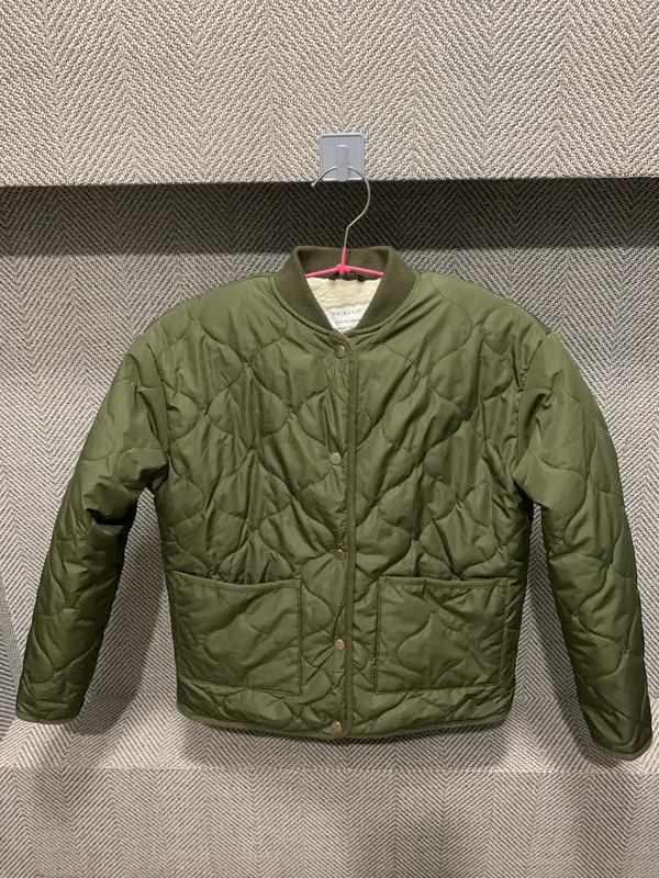 Стьобаний утеплений бомбер або куртка-лайнер (liner jacket) бренду Primark , 9-10 років , 140 см. Має ромбоподібний стьобаний візерунок , круглий виріз горловини , застібку на кнопках та накладні кишені , підійде як хлопчику так і дівчинці. Стан нової речі
