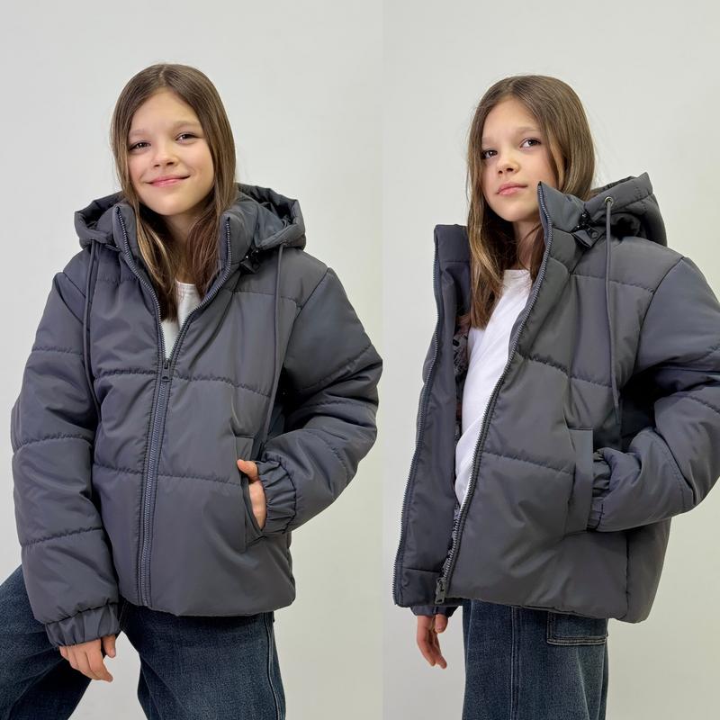 Куртка демисезон на молнии Ткань плащевка наполнитель Корейский пух, гипоаллергенный рукава на резинке снизу утяжка на фиксаторах капюшон отстегивающийся на молнии Цвет ТЭШ Рекомендую ! Цена 1380 грн рост/длина/пог/рукав от горловины похибка+-2см 140/50/46/58-1шт 146/52/48/60-1шт 152/54/49/62-1шт 158/56/50/65-1шт 164/58/52/67-1шт