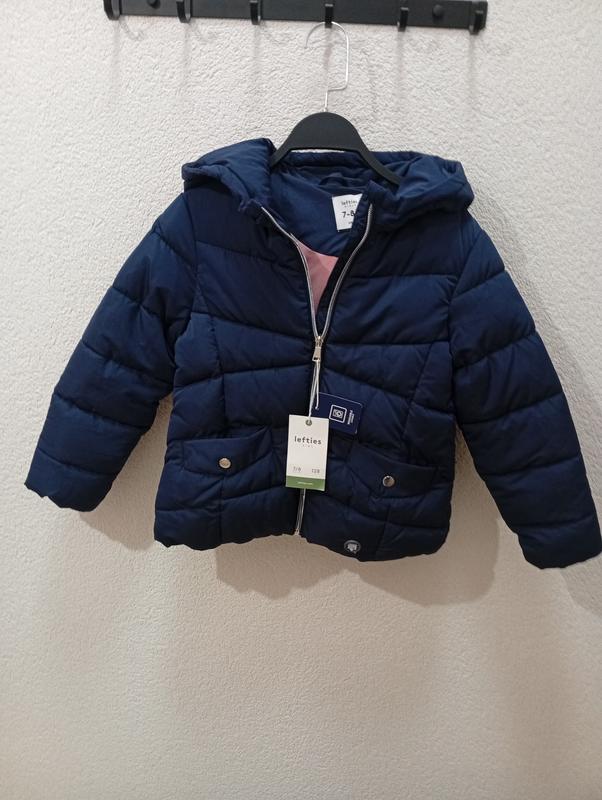 Дитяча стьобана куртка Lefties темно-синього кольору. Вона має капюшон та центральну застібку на блискавці з захистом підборіддя. Зовнішня оболонка, підкладка та наповнювач виготовлені з 100% поліестеру.