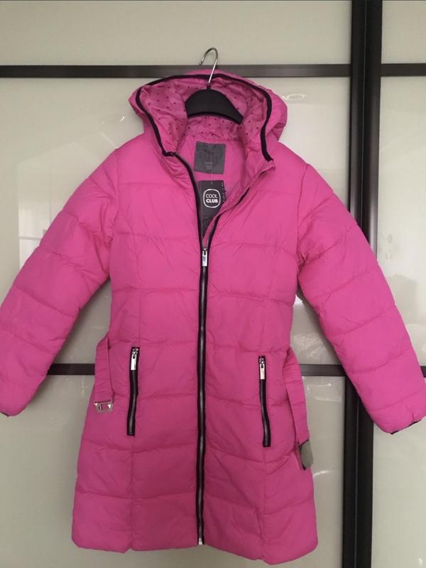 Яскраво-рожева, тепла, з капюшоном і двома зручними кишенями на блискавці. Усередині підкладка з принтом. Куртка легка, комфортна у носінні та добре гріє. Стан новий, взагалі не одягали. Причина продажу — дитина швидко переросла розмір.